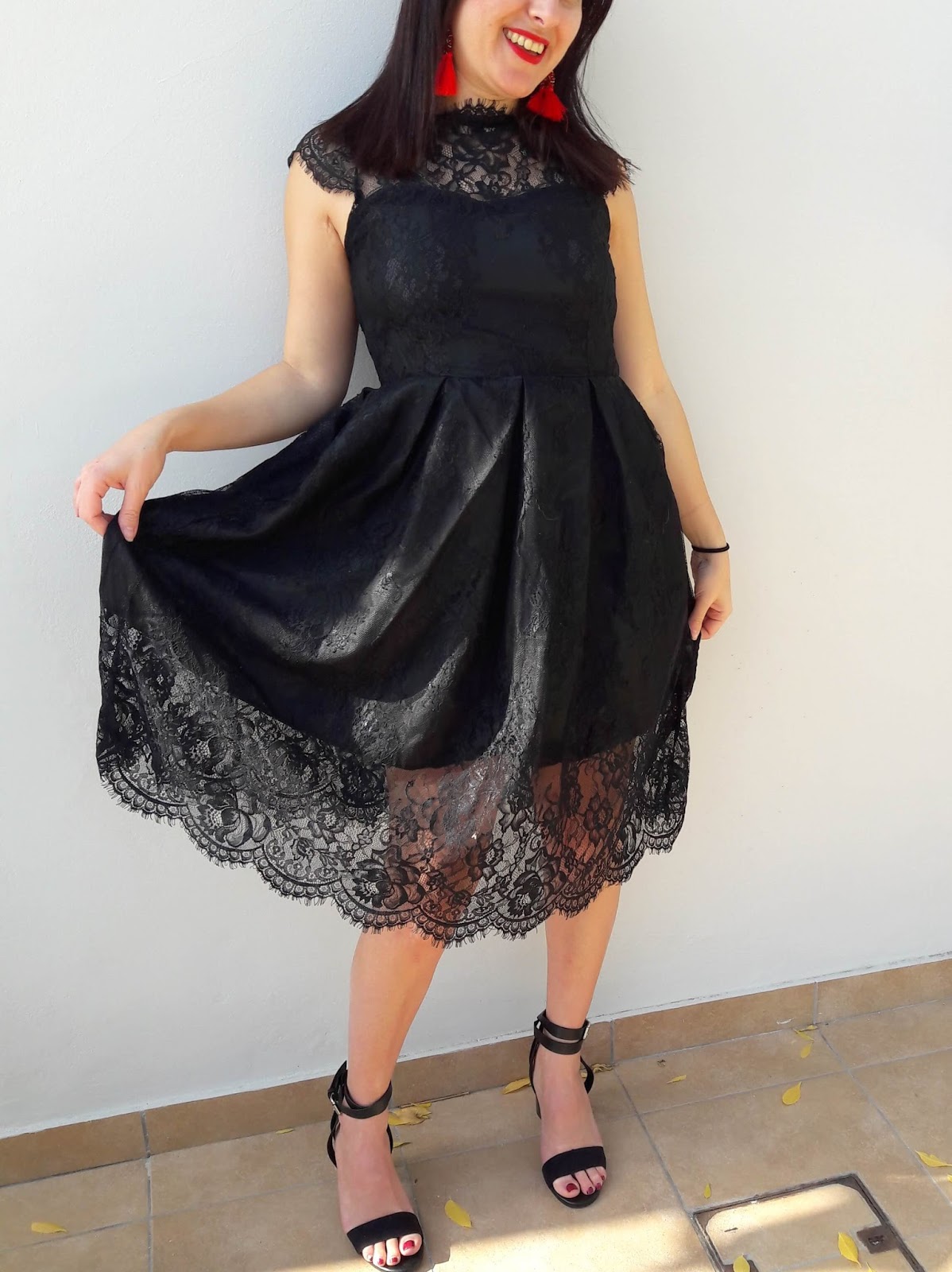 Next, this lovely black lace dress that would be perfect for prom, a wedding or for festive season. This dress has layers of lace underneath to give a 'fuller skirt' effect but to be honest, it was too poofy for me and I had to remove one layer to make it slimmer. And it worked! I paired it with a pair of red statement earrings and a pair of black sandals.